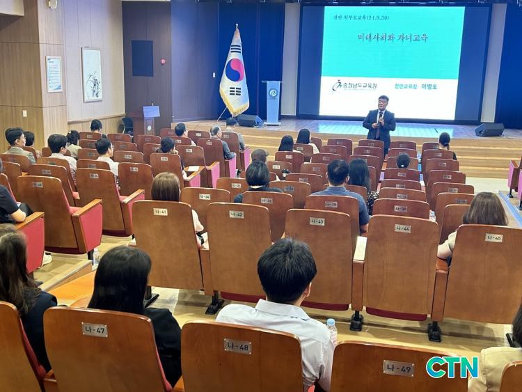 ÃæÃ»³²µµÃµ¾È±³À°Áö¿øÃ»ÀÌ 9¿ù 30ÀÏ(¿ù) °ü³» À¯¡¤ÃÊ¡¤Áß¡¤°í¡¤Æ¯¼öÇб³ Çкθ𸦠´ë»óÀ¸·Î õ¾È±³À°Áö¿øÃ» ´ëȸÀǽǿ¡¼ ÇϹݱâ Çкθ𠱳À°À» ÁøÇàÇϰí ÀÖ´Ù.