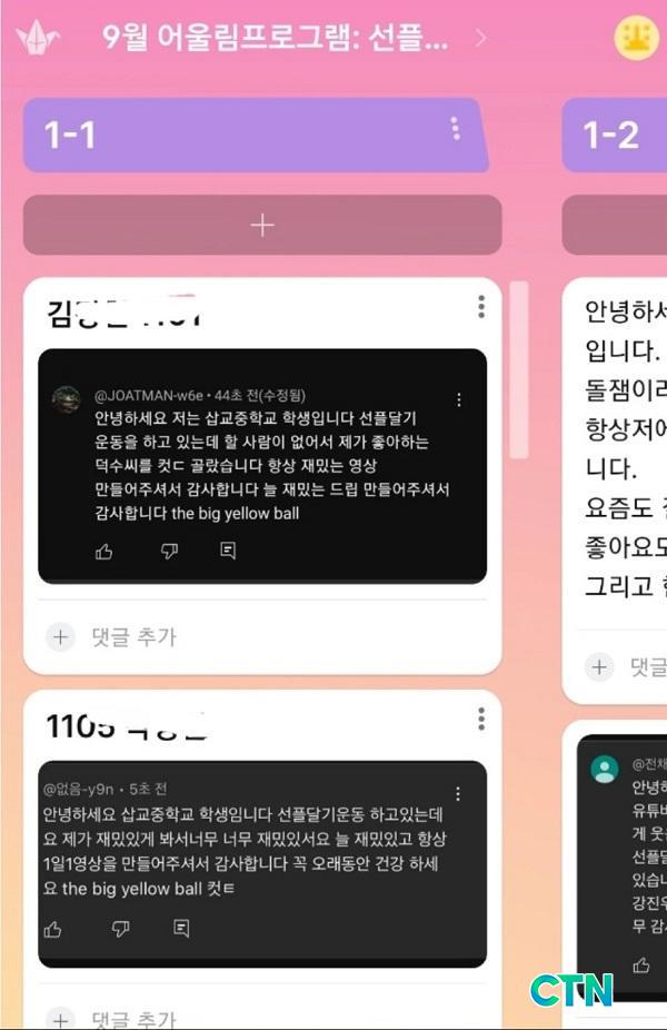 [¿¹»ê/CTN]ÃÖ¿ë°ü ±âÀÚ = ¿¹»ê »ð±³ÁßÇб³(±³Àå ±èÀ±¼÷)´Â 9¿ù ÇÑ ´Þ µ¿¾È Àü±³»ýÀ» ´ë»óÀ¸·Î ÁÁ¾ÆÇÏ´Â ÀÎÇ÷ç¾ð¼³ª À¯Æ©¹ö µîÀÇ Ã¤³Î¿¡ µé¾î°¡ 5¹®Àå ÀÌ»óÀÇ ¼±Ç®À» ´Þ°í ĸÃÄÇØ¼ ÆÐµé·¿¿¡ ¿Ã¸®´Â '¼±Çôޱâ' Ä·ÆäÀÎÀ» ¿¾ú´Ù.