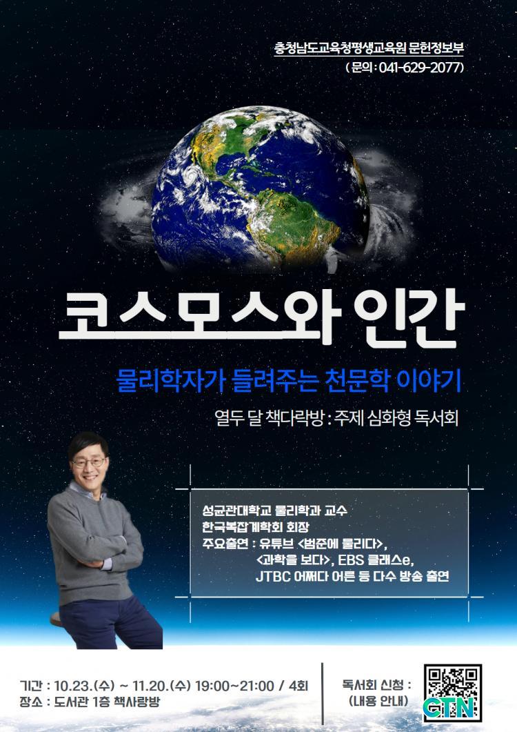 <ÁÖÁ¦ ½ÉÈÇü µ¶¼È¸>´Â ÁÖÁ¦ °ü·Ã Àü¹®°¡¿Í ÇÔ²²ÇÏ´Â ´ë¸é ¸ðÀÓÀ¸·Î ¼º±Õ°ü´ëÇб³ ¹°¸®Çаú ±è¹üÁØ ±³¼ö¸¦ ÁøÇàÀÚ·Î À§ÃËÇÏ¿© ¿ìÁÖ¿Í Àΰ£ Á¸ÀçÀÇ Àǹ̸¦ Åä·ÐÇÏ°í ¿¬°ü ÁÖÁ¦¸¦ ±íÀÌ Å½±¸Çϸç, µ¶¼¿¡ °ü½ÉÀÖ´Â Áö¿ªÁֹΠ´©±¸³ª Âü¿©ÇÒ ¼ö ÀÖ´Ù.