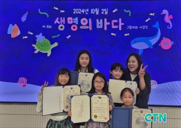Á¦10ȸ »ý¸íÀÇ ¹Ù´Ù ±×¸²´ëȸ¿¡¼ Áß°íµîºÎ ´ë»óÀ» ¼ö»óÇÑ ¿À¼ö¾Æ Çлý(»çÁø ¿À¸¥ÂÊ¿¡¼ µÎ¹øÂ°)/±³À°Å¸ÀÓÁî ¿ÀÁ¤ÀÏ ±âÀÚ