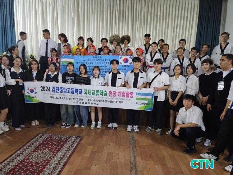 Áß¾Ó°í ±¹Á¦±³·ù´Ü ÇлýµéÀº ȯ¿µ½Ä Çà»ç ¶§ ¿ìÁŰ½ºÅºÀÇ ÀüÅë Ãã, űǵµ ½Ã¹ü, ºÎäÃã µîÀ» °¨»óÇϰí ÀÌ¿¡ ´ëÇÑ È´äÀ¸·Î K-POP ´í½º °ø¿¬, ¿ìÁŰ½ºÅº ÀüÅë °¡¿ä ÇÕâÀ» ¼±º¸¿´´Ù.