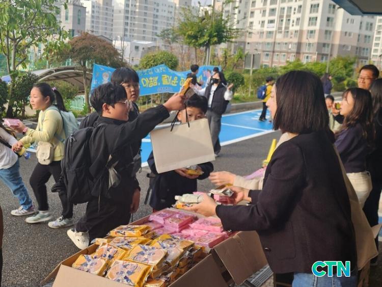[±³À°/CTN]Çϼº¸Å ±âÀÚ = ¿õõÃʵîÇб³(±³Àå ±èÀμø)´Â Áö³ 28ÀÏ Àü±³Çлýȸ ¹× Çкθðȸ ÀÓ¿øµé ÁÖ°üÀ¸·Î µî±·±æ ¾ÆÄ§¹ä ¸Ô±â Ä·ÆäÀÎÀ» Áß¾ÓÇö°ü ¾Õ¿¡¼ ÁøÇàÇÏ¿© Çлýµé·ÎºÎÅÍ Å« È£ÀÀÀ» ¾ò¾ú´Ù.