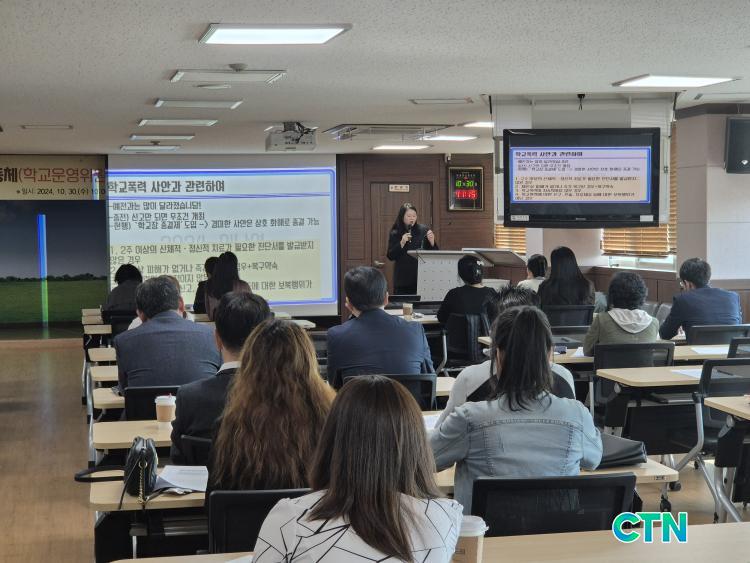 ¿¬¼ö¿¡ Âü¼®ÇÑ Çб³¿î¿µÀ§¿øÀåÀº "±³±Ç º¸È£ »ç¾ÈÀÌ ¹ß»ýµÇ¾úÀ» ¶§ ´ëÀÀ ¹æ¹ýÀ» ÀÌÇØÇÒ ¼ö ÀÖ¾ú°í, ±³±Ç Ä§ÇØ »ç¾ÈÀÌ ¹ß»ýÇÏÁö ¾Êµµ·Ï Çлý, Çкθð, ±³»ç°¡ ÇÔ²² ¼ÒÅëÇϰí Çù·ÂÇÏ´Â°Ô Áß¿äÇÏ´Ù´Â °ÍÀ» ±ú´Ý´Â ÀÇ¹Ì ÀÖ´Â ½Ã°£À̾ú´Ù"¶ó°í ¸»Çß´Ù.