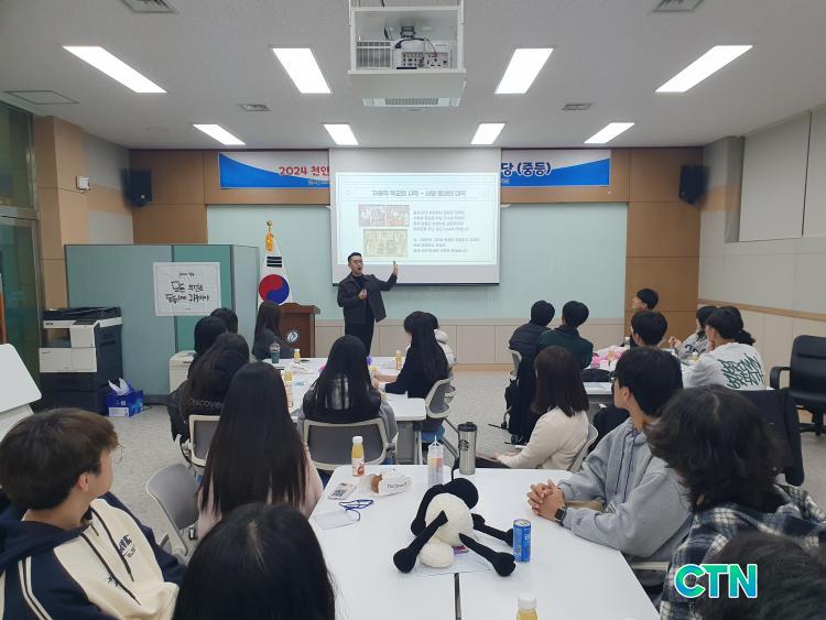 [õ¾È/CTN]°Çö¼ö ±âÀÚ = ÃæÃ»³²µµÃµ¾È±³À°Áö¿øÃ»(±³À°Àå À̺´µµ) ±³À°Çõ½Å¼¾ÅÍ´Â 11¿ù 23ÀÏ(Åä) °ü³» Çõ½ÅÇб³¿Í Çõ½Åµ¿ÇàÇб³ ÇлýÀ» ´ë»óÀ¸·Î ¡®Ãµ¾È Çõ½Å(µ¿Çà)Çб³ Çлý À̾߱â ÇѸ¶´ç¡¯À» °³ÃÖÇß´Ù. ¿ÃÇØ·Î 3ȸ°ÀÎ ¡®Ãµ¾È Çõ½Å(µ¿Çà)Çб³ Çлý À̾߱â ÇѸ¶´ç¡¯Àº ¡®Çõ½ÅÇб³ Åë(÷×)ÇÏ´Ù¡¯ ÁÖÁ¦·Î ¼ÒÅëÇÏ¸ç ¼ºÀåÇÏ´Â ÇູÇÑ Çõ½Å(µ¿Çà)Çб³¸¦ ±¸ÇöÇϰíÀÚ ÇÑ´Ù.