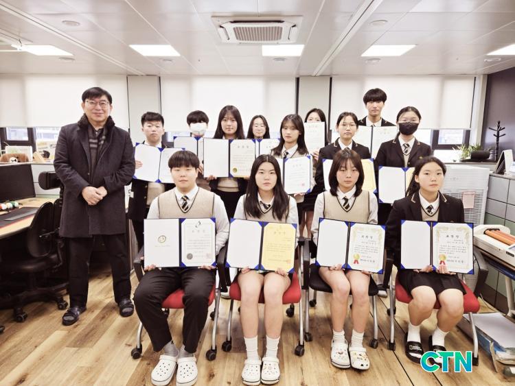õ¾ÈºÏÁßÇб³ Á¹¾÷»ý¿¡¼ »óÀå ¼ö¿©ÇÏ°í ±â³ä»çÁøÀ» Âï°í ÀÖ´Ù.