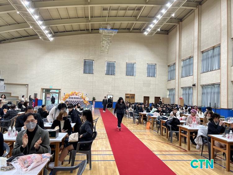 Á¹¾÷Àå ¼ö¿©½Ä¿¡¼´Â °¢ Á¹¾÷»ýÀÇ À̸§ÀÌ È£¸íµÉ ¶§¸¶´Ù ·¹µåÄ«ÆêÀ» ¹â°í ÀÔÀåÇϴ Ưº°ÇÑ ¿¬ÃâÀ» ÅëÇØ Á¹¾÷»ý ÇÑ ¸í ÇÑ ¸í¿¡°Ô ÁÖ¸ñ¹Þ´Â ¼ø°£À» ¼±»çÇß´Ù.