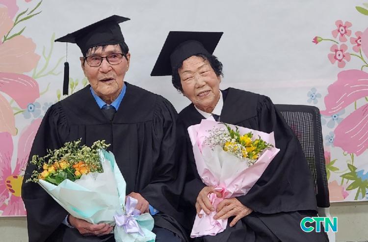 ¼Û»ï¼ö ÇҾƹöÁö¿Í ¹ÚÁ¤¾Ö ÇҸӴϰ¡ Á¹¾÷ÀåÀ» ¹Þ±â À§ÇØ ´Ü»ó¿¡ ¿À¸£ÀÚ Àü±³»ý°ú ±³Á÷¿ø ¸ðµÎ°¡ ¶ß°Å¿î ¹Ú¼ö·Î µÎ ºÐÀÇ ³ë°í¿Í ¿Á¤À» ÃàÇÏÇß´Ù.