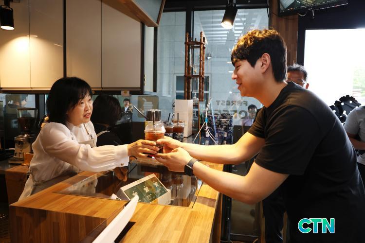 È«¼Ò¿µ º´¹«Ã»ÀåÀº 17ÀÏ ³ª¶ó»ç¶û°¡°ÔÀÎ ´ë±¸ ¼ÒÀç Ä«Æä¿¡¼ ÀÏÀÏ Ä«ÆäÁö±â·Î Âü¿©ÇØ, ¸ÅÀåÀ» ãÀº º´¿ªÀǹ«ÀÚ¿Í ºÎ¸ð´Ôµé¿¡°Ô °¨»çÀÇ ¸¶À½À» ´ã¾Æ À½·á¸¦ Á¦°øÇß´Ù.
