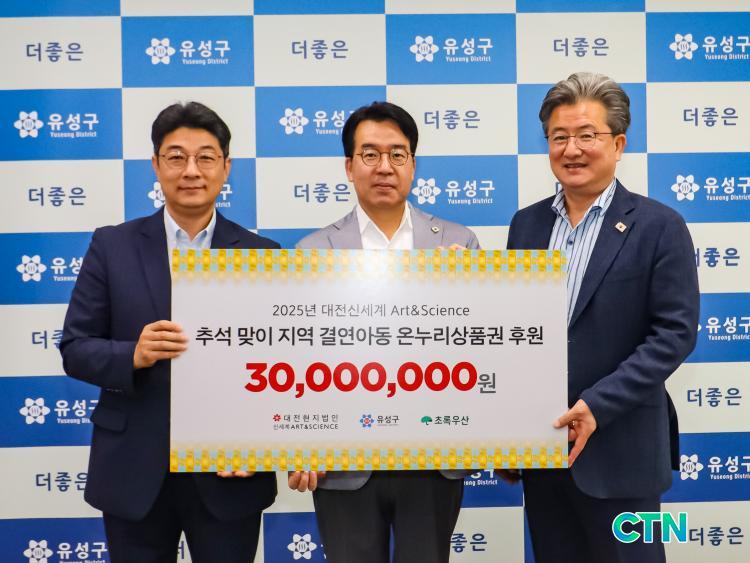 ´ëÀü½Å¼¼°è Art & Science´Â 24ÀÏ ¿ÀÀü À¯¼º±¸Ã»¿¡¼ ¿Â´©¸®»óǰ±Ç 3000¸¸¿øÀ» ±âŹÇß´Ù. ±âŹ½Ä¿¡´Â À±¼®Èñ ´ëÀü½Å¼¼°è Art&Science ´ëÇ¥ÀÌ»ç, Á¤¿ë·¡ À¯¼º±¸Ã»Àå, ÃÖ½ÂÀÎ ÃÊ·Ï¿ì»ê ´ëÀüÁö¿ªº»ºÎ ÃæÃ»±ÇÃѰýº»ºÎÀå µîÀÌ Âü¼®Çß´Ù. ´ëÀü½Å¼¼°è Art&Science°¡ ±âŹÇÑ ¿Â´©¸®»óǰ±ÇÀº À¯¼º±¸ µå¸²½ºÅ¸Æ® »ç·Ê°ü¸® ´ë»óÀÚ ¹× Áö¿ª¾Æµ¿¼¾ÅÍ ¾Æµ¿ µî 300¼¼´ë¿¡°Ô 10¸¸¿ø¾¿ Àü´ÞµÉ ¿¹Á¤ÀÌ´Ù.
