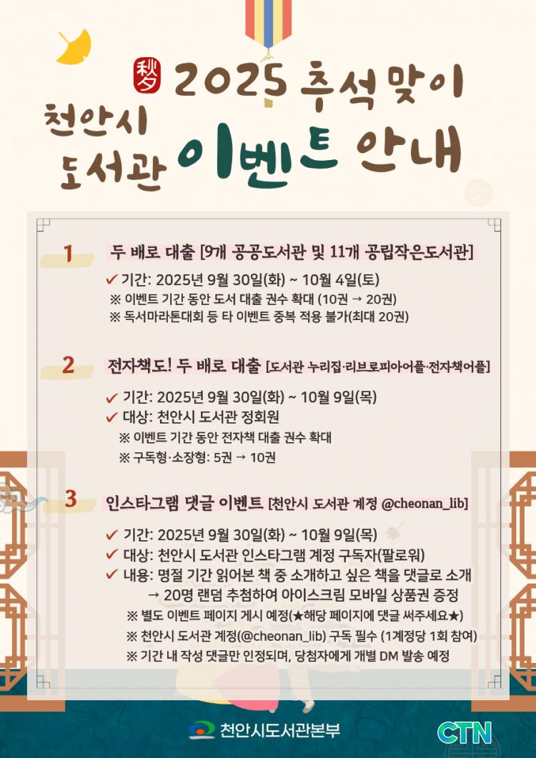 [õ¾È/CTN] °Çö¼ö ±âÀÚ = õ¾È½Ãµµ¼°üº»ºÎ´Â Ãß¼® ¿¬ÈÞ¸¦ ¸Â¾Æ ½Ã¹ÎµéÀÌ µµ¼°üÀ» ´õ¿í Æí¸®ÇÏ°Ô ÀÌ¿ëÇÒ ¼ö ÀÖµµ·Ï ´Ù¾çÇÑ µ¶¼ À̺¥Æ®¸¦ ¸¶·ÃÇß´Ù°í 9¿ù 29ÀÏ ¹àÇû´Ù.
