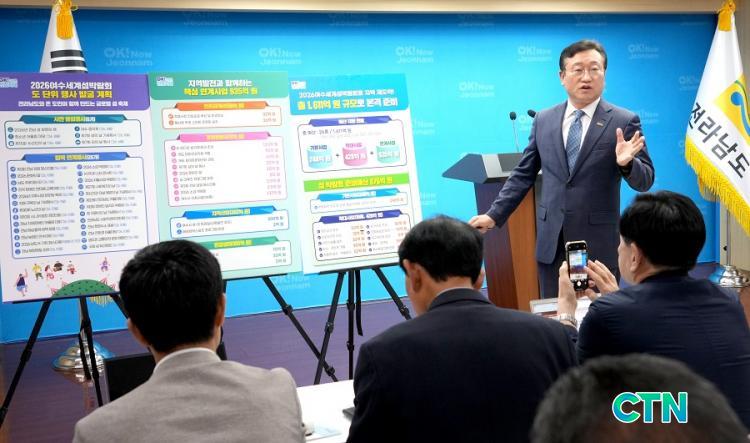 À̾î "öÀúÇÑ Áغñ·Î ¹Ú¶÷ȸ¸¦ ¹Ýµå½Ã ¼º°ø °³ÃÖÇϰí, Àü³²µµ¸¦ ¼¼°è ¼¶ÀÇ Áß½ÉÀÌÀÚ ±Û·Î¹ú ÇØ¾ç°ü±¤ Çãºê·Î µµ¾à½Ã۰ڴÙ"°í °Á¶Çß´Ù.