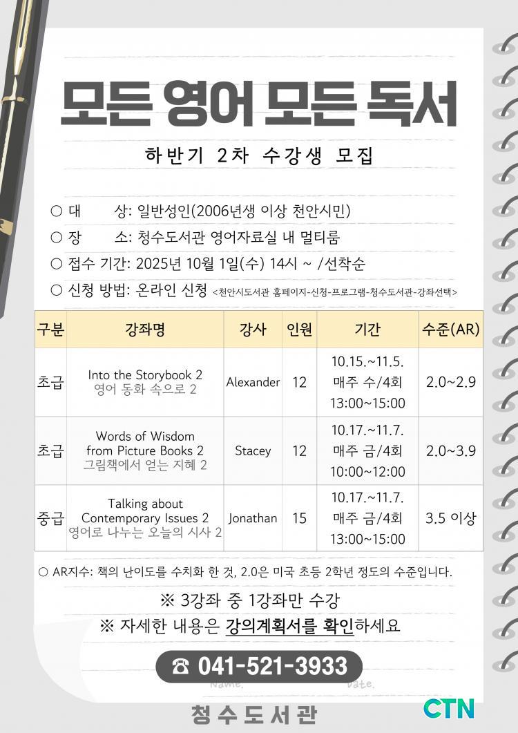 [õ¾È/CTN] °Çö¼ö ±âÀÚ = õ¾È½Ã û¼öµµ¼°üÀº 10¿ù 1ÀÏ(¼ö)ºÎÅÍ ¼ºÀÎ ´ë»ó ¿µ¾î ÇÁ·Î±×·¥ ¡®¸ðµç ¿µ¾î ¸ðµç µ¶¼¡¯ ¼ö°»ýÀ» ¸ðÁýÇÑ´Ù°í 9¿ù 30ÀÏ(È) ¹àÇû´Ù.