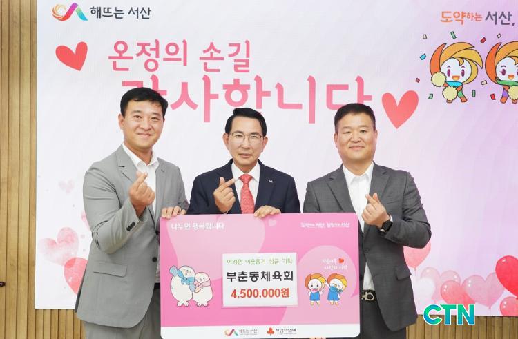 [¼»ê/CTN]°¡±ÝÇö ±âÀÚ = Ãæ³² ¼»ê½Ã´Â Áö³ 9¿ù 30ÀÏ ºÎÃᵿüÀ°È¸¿¡¼ Áö¿ª ³» ¾î·Á¿î ÀÌ¿ôÀ» µ½±â À§ÇÑ ¼º±Ý 450¸¸ ¿øÀ» ±âŹÇß´Ù°í ¹àÇû´Ù.