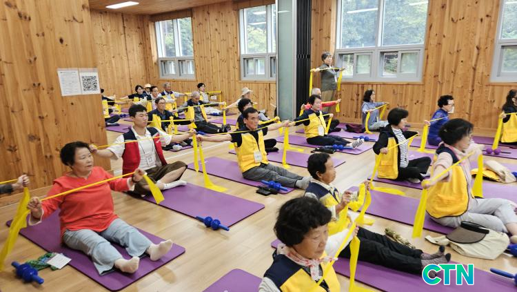 ¾î¸£½ÅµéÀº ½£ µ¥Å©±æÀ» °ÉÀ¸¸ç °¡À» ½£ÀÇ Á¤Ã븦 °¨»óÇÑ µÚ, ¼Òµµ±¸¸¦ Ȱ¿ëÇÑ ¿îµ¿ ÇÁ·Î±×·¥¿¡ Âü¿©ÇØ ±Ù·Â °È¿¡ µµ¿òÀÌ µÇ´Â ¸¶»çÁö ¹æ¹ýÀ» ¹è¿ì´Â ½Ã°£À» °¡Á³´Ù. ÀÌ¾î ±¹¸³¿¹»êÄ¡À¯Àǽ£¿¡¼ ÀÚü Á¦ÀÛÇÑ ±³±¸¸¦ Ȱ¿ëÇÑ ¡®½¶·± °ÔÀÓ¡¯À» ÅëÇØ Âü¿©ÀÚ °£ Ä£¹Ð°¨À» ³ôÀ̰í Áñ°Å¿î ±³·ùÀÇ ½Ã°£À» ³ª´³´Ù.