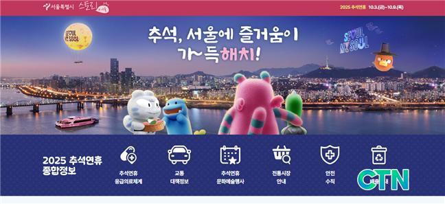 [¼¿ï/CTN]°¡±ÝÇö ±âÀÚ= ¼¿ï½Ã´Â 7Àϰ£ À̾îÁö´Â 2025³â Ãß¼® ¿¬ÈÞ ±â°£ µ¿¾È ½Ã¹ÎµéÀÇ ¾ÈÀüÇÏ°í Æí¸®ÇÑ ¿¬ÈÞ »ýȰÀ» À§ÇØ '2025 Ãß¼®¿¬ÈÞ Á¾ÇÕÁ¤º¸' ¼ºñ½º¸¦ ¼¿ï½Ã ´ëÇ¥ ´©¸®ÁýÀ» ÅëÇØ Á¦°øÇÑ´Ù.