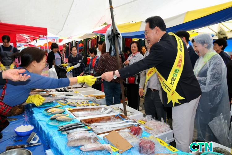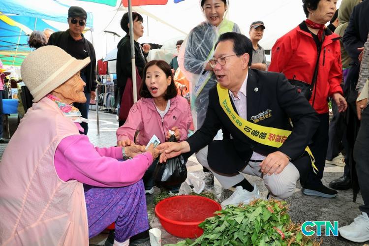 3ÀÏ, ¼ÛÀÎÇå ±º¼ö´Â ±«»êÀüÅë½ÃÀå °÷°÷À» µ¹¸ç Á¦Ã¶ ³ó»ê¹°°ú ¼ö»ê¹° µîÀ» Á÷Á¢ ±¸ÀÔÇϰí, »óÀεé°ú ÀÏÀÏÀÌ ¾Ç¼öÇϸç ÇöÀåÀÇ »ý»ýÇÑ ¸ñ¼Ò¸®¸¦ ûÃëÇß´Ù. / »çÁøÁ¦°ø ±«»ê±º |