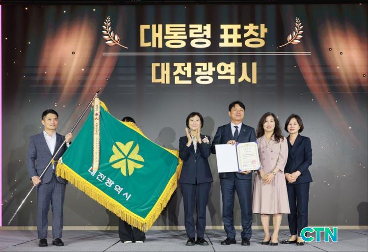 [´ëÀü/CTN]Á¤¹ÎÁØ ±âÀÚ¤Ó´ëÀü½Ã´Â 10ÀÏ ¼¿ï Æä¾î¸óÆ® ¾Ú¹è¼´õ¿¡¼ ¿¸° º¸°Çº¹ÁöºÎ ÁÖ°ü ¡®Á¦20ȸ ÀÓ»êºÎÀÇ ³¯ ±â³äÇà»ç¡¯¿¡¼ ´ëÅë·É ±â°ü ǥâÀ» ¼ö»óÇß´Ù. Àü±¹ ÀÚÄ¡´Üü Áß À¯ÀÏÇÑ ¼ö»óÀ¸·Î, ´ëÀü½ÃÀÇ Àӽš¤Ãâ»ê Ä£È Á¤Ã¥ÀÌ Àü±¹Àû ¸ð¹üÀ¸·Î ÀÎÁ¤¹Þ¾Ò´Ù.