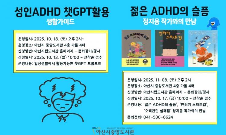 [¾Æ»ê/CTN]Á¶¼ºÂù ±âÀÚ = ¾Æ»ê½Ã¸³µµ¼°üÀº ¼ºÀÎ ADHD(ÁÖÀǷ°áÇÌ °úÀ×ÇൿÀå¾Ö)¿¡ ´ëÇÑ »çȸÀû ÀÎ½Ä °³¼±°ú ½ÇÁúÀûÀÎ »ýȰ Áö¿øÀ» À§ÇØ ¿À´Â 10¿ù°ú 11¿ù Áß¾Óµµ¼°ü¿¡¼ ÁÖÁ¦ Ư°À» ¿î¿µÇÑ´Ù°í ¹àÇû´Ù.