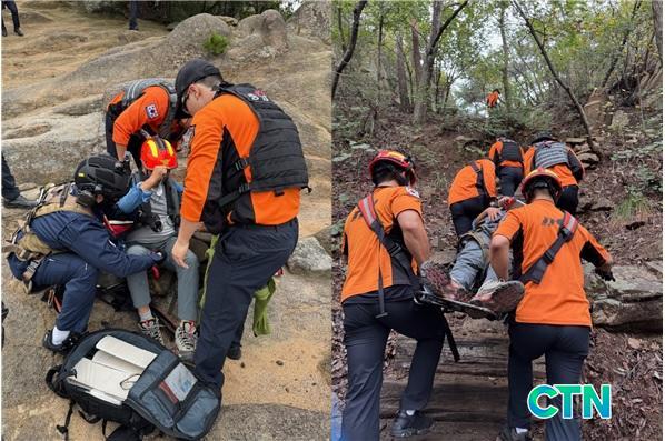 ÇöÀåÀº °æ»ç°¡ ±ÞÇÏ°í ¾Ï¼®ÀÌ ¸¹Àº Áö¿ªÀ¸·Î Á¢±ÙÀÌ ¾î·Á¿î ±¸°£À̾úÀ¸³ª, ±¸Á¶´ë¿øµéÀº µî»ê·Î ÁøÀԷθ¦ µû¶ó Àåºñ¸¦ ÈÞ´ëÇÏ°í µµº¸·Î À̵¿ÇØ ºÎ»óÀÚ¸¦ È®ÀÎÇß´Ù. ºÎ»óÀÚ´Â ³«»óÀ¸·Î ÀÎÇØ ÁÂÃø ¹ß¸ñ°ú ÆÈ²ÞÄ¡ ºÎÀ§¸¦ ´ÙÄ£ »óÅ¿´À¸¸ç, ÀǽÄÀº ¸í·áÇϳª ÅëÁõÀ» È£¼ÒÇϰí ÀÖ¾ú´Ù.