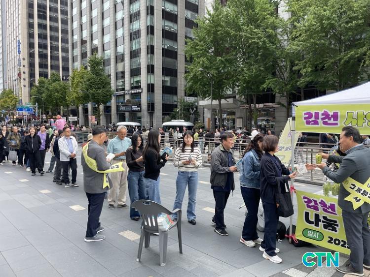 ¶ÇÇÑ, ÇöÀå¿¡¼´Â ±èõ½Ã¿¡¼ °³¼³ÇÑ Á÷°Å·¡ÀåÅÍ '±èõÆÊ¾ØÀåÅÍ(gcmall.cyso.co.kr/shop)'¸¦ È«º¸Çϱâ À§ÇÏ¿© ½ºÆ¼Ä¿°¡ ºÎÂøµÈ ÄÅ¿¡ ±èõ Àڵθ¦ ´ã¾Æ ½Ã¹Îµé¿¡°Ô ³ª´²ÁÖ¾ú°í, ±èõ ´ëÇ¥ ƯÈÀ½½Ä °³¹ß·Î ź»ýÇÑ ¡®ÆÈ¸À´ëÀå°æ¡¯°ú ÇÔ²² ±èõÀÇ ÁÖ¿ä °ü±¤Áö µî ´Ù¾çÇÑ ½ÃÁ¤ Á¤º¸µµ ÇÔ²² È«º¸Çß´Ù.