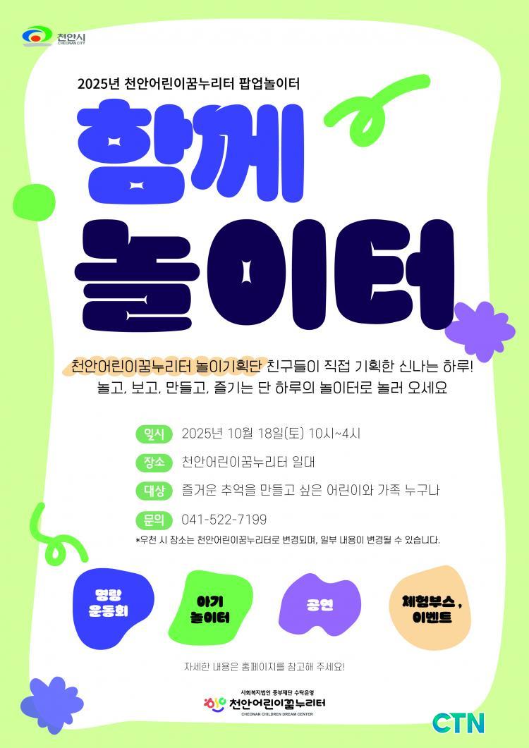 [õ¾È/CTN] °Çö¼ö ±âÀÚ = õ¾È¾î¸°À̲޴©¸®ÅÍ(°üÀå Á¶»ïÇõ)´Â ¿À´Â 10¿ù 18ÀÏ(Åä) õ¾È¾î¸°À̲޴©¸®ÅÍ ÀÏ´ë¿¡¼ Á¦8ȸÂ÷ ÆË¾÷³îÀÌÅÍ ¡®ÇÔ²²³îÀÌÅÍ by ³îÀ̱âȹ´Ü¡¯À» °³ÃÖÇÑ´Ù°í ¹àÇû´Ù.