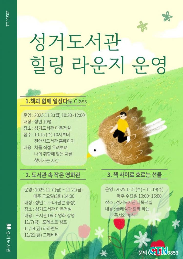 [õ¾È/CTN] °­Çö¼ö ±âÀÚ = õ¾È½Ã ¼º°Åµµ¼­°üÀº ¿À´Â 11¿ù, Áö¿ª Áֹε鿡°Ô ÀÏ»ó ¼Ó È޽İú ¹®È­ üÇèÀÇ ±âȸ¸¦ Á¦°øÇϱâ À§ÇÑ ¡®Èú¸µ ¶ó¿îÁö¡¯ ÇÁ·Î±×·¥À» ¿î¿µÇÑ´Ù°í 17ÀÏ ¹àÇû´Ù.