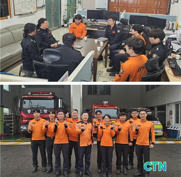 À̹ø ¹æ¹®Àº ½Ã¹Î¿¡°Ô ¼öÁØ ³ôÀº ¼Ò¹æ¼ºñ½º¸¦ Á¦°øÇÒ ¼ö ÀÖµµ·Ï ¼Ò¹æÈ°µ¿ ¿©°ÇÀ» ÆÄ¾ÇÇϰí ÈÀ硤±¸Á¶¡¤±¸±Þ µî ´Ù¾çÇÑ Ã⵿À¸·Î ¹ã³·¾øÀÌ ÃÖÀü¼±À» ÁöŰ´Â Á÷¿øµéÀÇ ³ë°í¸¦ °Ý·ÁÇϰíÀÚ ¸¶·ÃµÇ¾ú´Ù.