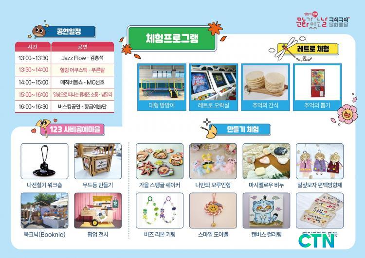 ºÏÅ©´Ð ÇÁ·Î±×·¥Àº º°µµ ¿¹¾à ¾øÀÌ ÇöÀå¿¡¼ ÀÚÀ¯·Ó°Ô ÀÌ¿ë °¡´ÉÇϸç, À̿ܿ¡µµ °¡À»°ú ¾î¿ï¸®´Â ¡ã¹ö½ºÅ·°ø¿¬, ¡ã°ø¿¹Ã¼Çè, ¡ã·¹Æ®·Î üÇèÁ¸ ÇÁ·Î±×·¥ÀÌ ÇÔ²² ¿î¿µµÈ´Ù. ¡ã¹ö½ºÅ·°ø¿¬Àº °¡À»ÀÇ ÈÞ½ÄÀ» ´õÇØÁÙ ÀçÁî¿Í ¾îÄí½ºÆ½ °ø¿¬ÀÌ À̾îÁö¸ç, °¡Á· ´ÜÀ§ °ü¶÷°´À» À§ÇÑ ¸ÅÁ÷ ¹öºí¼îµµ ÆîÃÄÁ® ´Ùä·Î¿î º¼°Å¸®¸¦ ¼±»çÇÒ ¿¹Á¤ÀÌ´Ù.