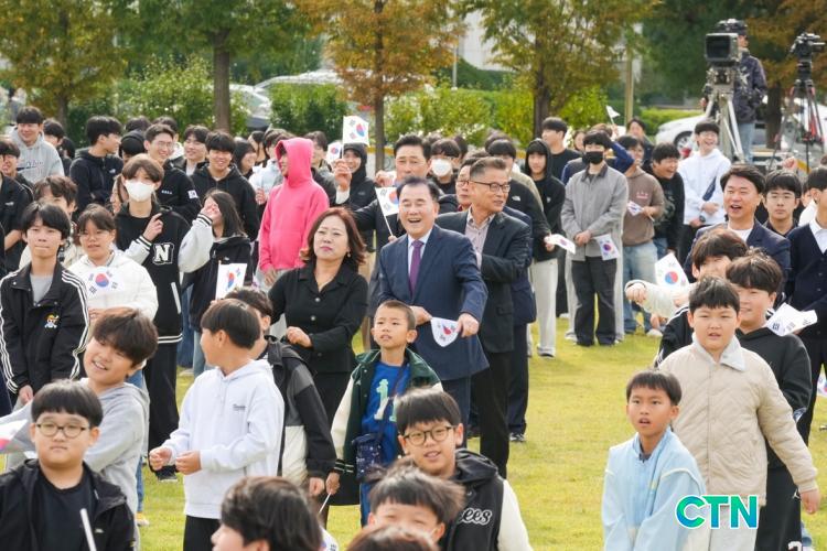 Ãæ³²±³À°Ã» ÀÏ¿ø ¾ß¿Ü¹«´ë¿¡¼´Â ±èÁöö ±³À°°¨À» Æ÷ÇÔÇÑ 4¸íÀÇ ±³À°°øµ¿Ã¼ ´ëÇ¥°¡ µ¶µµ¼öÈ£ °áÀǹ®À» ³¶µ¶ÇÏ¿´À¸¸ç, Çѱ¹ ÄÉÀÌÆË(K-POP)°í ÇлýµéÀÌ 'Ȧ·Î¾Æ¸®¶û'À» ÇÕâ°ú ¹«¿ëÀ¸·Î Ç¥ÇöÇÑ Æ¯º°°ø¿¬À» ÆîÃÆ´Ù.