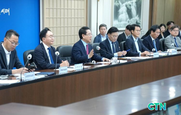 ȸÀÇ¿¡¼± ±è¿µ·Ï Àü³²µµÁö»ç ÁÖÀç·Î °ü·Ã ±â°üÀå°ú ½Ç¡¤±¹ÀåÀÌ Âü¼®ÇÑ °¡¿îµ¥ Á¤ºÎ ÁÖµµ ´ëÇü ±¹Ã¥»ç¾÷ÀÎ ÀΰøÅÂ¾ç ¿¬±¸½Ã¼³ À¯Ä¡ »ç¾÷ ´ëÀÀ Àü·«À» ³íÀÇÇϰí, °·ÂÇÑ À¯Ä¡ ÀÇÁö¸¦ ´ÙÁ³´Ù.