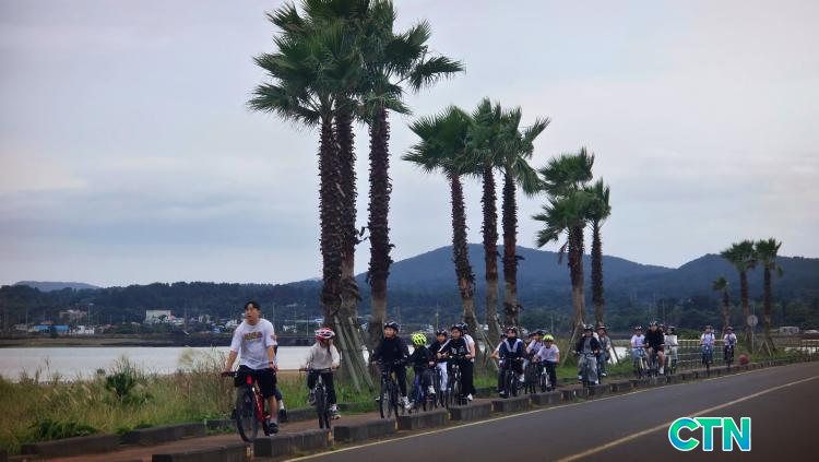 Âü°¡ û¼Ò³â°ú ÁöµµÀÚµéÀÌ ¼º»êÀÏÃâºÀ Àα٠¡®ÇضߴÂÁý¡¯¿¡¼ ÇϵµÇؼö¿åÀå±îÁö ¾à 9.3km¿¡ ´ÞÇÏ´Â ÇØ¾È ÀÚÀü°Å Àü¿ëµµ·Î¸¦ µû¶ó ÀÚÀü°Å ÇÏÀÌÅ·À» ÁøÇàÇϰí ÀÖ´Ù. |