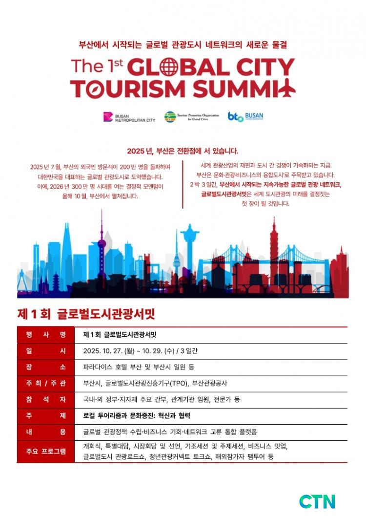 ºÎ»ê½Ã¿Í ±Û·Î¹úµµ½Ã°ü±¤ÁøÈï±â±¸(TPO), ºÎ»ê°ü±¤°ø»ç°¡ °øµ¿ ÁÖÃÖ¡¤ÁÖ°üÇÏ´Â À̹ø ¼¹Ô¿¡´Â 14°³±¹ 22°³ µµ½ÃÀÇ °ü±¤Á¤Ã¥ °ü°èÀÚ, ±¹Á¦±â±¸ ¹× Çа衤¾÷°è °íÀ§±Þ ÀÎ»ç µî 400¿© ¸íÀÌ Âü¼®ÇÑ´Ù.