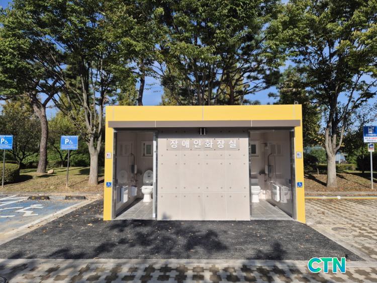 ½Å¼³µÈ Àå¾ÖÀÎ ÈÀå½ÇÀº ÈÙü¾î ÀÌ¿ëÀÚ¿Í °Åµ¿ÀÌ ºÒÆíÇÑ ½Ã¹ÎµéÀ» À§ÇÑ ½Ã¼³·Î, »êÃ¥·Î Áß°£ ÁöÁ¡ÀÎ ½ÅÁ¤È£Á¤¿ø ´ÀƼ³ª¹« ÁÖÂ÷Àå(±â»êµ¿ 12-7)¿¡ Á¶¼ºµÆ´Ù.