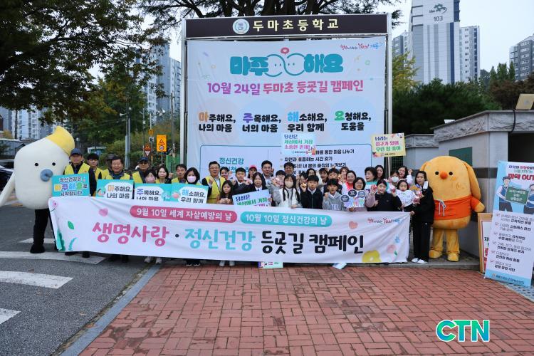 [°è·æ/CTN]Á¤¹ÎÁØ ±âÀÚ¤Ó°è·æ½Ã´Â Áö³ 24ÀÏ µÎ¸¶ÃʵîÇб³¿¡¼ Á¤½Å°Ç° È«º¸ÁÖ°£(10. 10.¡24.)À» ¸Â¾Æ ±³Á÷¿ø°ú Çлý ¾à 400¸íÀ» ´ë»óÀ¸·Î ¸¶À½ °Ç° µî±·±æ Ä·ÆäÀÎÀ» ÁøÇàÇß´Ù.