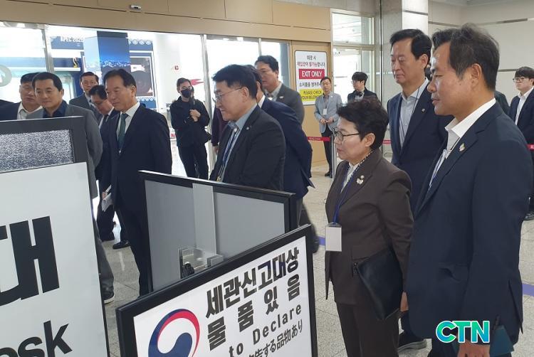 24ÀÏ¿¡´Â ±¹È¸ ÀÓÀÌÀÚ ±âȹÀçÁ¤À§¿øÀå µî À§¿ø 20¿© ¸íÀÌ Æ÷Ç×°æÁÖ°øÇ׿¡ ¹æ¹®ÇØ, APEC Á¤»óȸÀǸ¦ ´ëºñÇÑ Áغñ »óȲÀ» º¸°í ¹Þ°í ÀÔ¡¤Ãâ±¹Àå ³» CIQ ½Ã¼³ ¹× ÀýÂ÷¸¦ Á¡°ËÇÏ´Â µî ÇöÀåÀ» ½ÃÂûÇß´Ù.