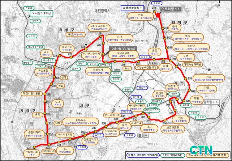 ÇÑÆí, ´ëÀü µµ½Ãöµµ 2È£¼± Æ®·¥ °Ç¼³°ø»ç´Â 5°³ ±¸¸¦ ¿¬°áÇÏ´Â ¼øÈ¯¼±À¸·Î ¡ã¿¬Àå 38.8km ¡ãÁ¤°ÅÀå 45°³¼Ò ¡ãÂ÷·®±âÁö 1°³¼Ò µîÀÌ °Ç¼³µÇ¸ç, Á¤°ÅÀå °Ç¼³°ø»ç´Â 2026³â »ó¹Ý±â Âø°ø µî 2028³â 12¿ù °³Åë ¸ñÇ¥·Î °ø»ç¸¦ ÃßÁøÇϰí ÀÖ´Ù.