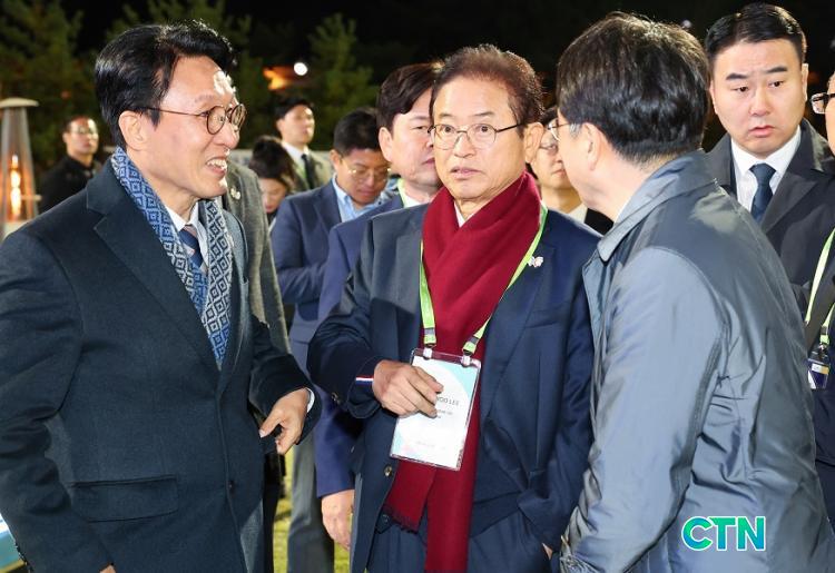ÀÌö¿ì °æ»óºÏµµÁö»ç´Â 28ÀÏ °æÁÖ È¶û¸¶À»¿¡¼ ¿¸° APEC CEO SUMMIT °ø½Ä ȯ¿µ ¸¸Âù¿¡ Âü¼®Çß´Ù. / »çÁøÁ¦°ø °æ»óºÏµµ
