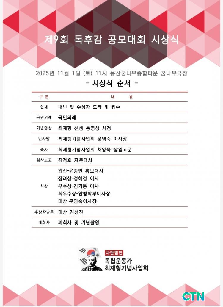 Á¦9ȸ ÃÖÀçÇü µ¶Èݨ °ø¸ð´ëȸ...11¿ù 1ÀÏ ½Ã»ó½Ä
