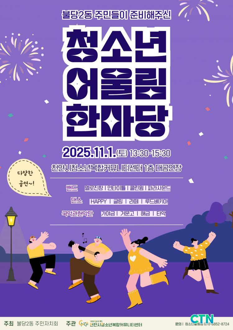 [õ¾È/CTN] °Çö¼ö ±âÀÚ = õ¾È½Ãû¼Ò³âÀç´Ü(ÀÌ»çÀå ±è¼®ÇÊ) »êÇÏ Ãµ¾È½Ãû¼Ò³âº¹ÇÕÄ¿¹Â´ÏƼ¼¾ÅÍ(°üÀå À±¿©¼þ)´Â 11¿ù 1ÀÏ(Åä) ¼¾ÅÍ ³»¿¡¼ ¿¸®´Â ºÒ´ç2µ¿ ÁÖ¹ÎÃÑȸ¿Í ÇÔ²² û¼Ò³âµéÀÌ Á÷Á¢ ÁغñÇÑ °ø¿¬ ¡®Ã»¼Ò³â¾î¿ï¸²ÇѸ¶´ç¡¯À» °³ÃÖÇÑ´Ù°í ¹àÇû´Ù.