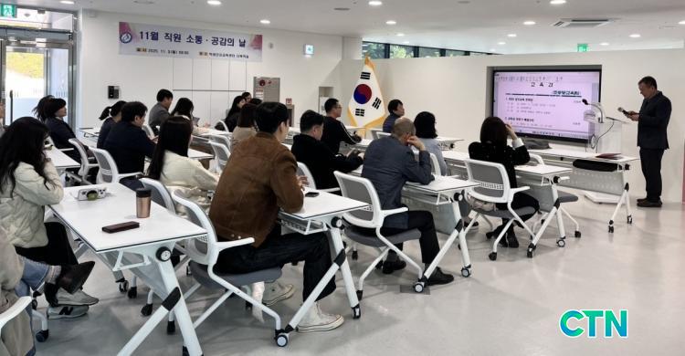 À̳¯ ȸÀÇ¿¡´Â û¾ç±³À°Áö¿øÃ» Àü Á÷¿ø°ú ¼Ò¼Ó ±â°ü Á÷¿øµéÀÌ Âü¼®ÇÑ °¡¿îµ¥ ¡ã11¿ù ÁÖ¿ä ¾÷¹« °øÀ¯ ¡ãÁ÷Àå ³» ±³À° ¡ã¼¾ÅÍ ½Ã¼³ °ßÇÐ µî ´Ù¾çÇÑ ÇÁ·Î±×·¥ÀÌ ÁøÇàµÆ´Ù. ÀÌ·¯ÇÑ ±¸¼ºÀº Á÷¿øµéÀÌ ¼¾ÅÍÀÇ ½Ã¼³°ú ±â´ÉÀ» Á÷Á¢ ü°¨Çϰí, ÇâÈÄ È°¿ë ¹æ¾ÈÀ» ÇÔ²² ¸ð»öÇÏ´Â ±âȸ¸¦ Á¦°øÇÏ¿´´Ù.