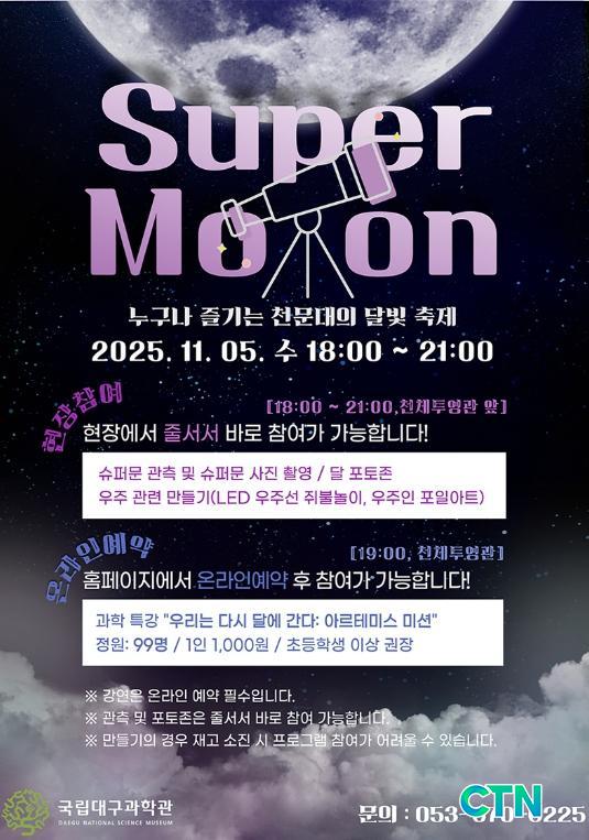 ¿ÃÇØÀÇ ½´ÆÛ¹®Àº 11¿ù 5ÀÏ¿¡ °üÃøÇÒ ¼ö ÀÖÀ¸¸ç, 2025³â °üÃøµÇ´Â ´ÞÀÇ Å©±â Áß¿¡ °¡Àå Å©°í ¹à°Ô º¸ÀÌ´Â ´ÞÀÌ´Ù. À̸¦ ±â³äÇÏ¿© ±¹¸³´ë±¸°úÇаü¿¡¼´Â 11¿ù 5ÀÏ ½´ÆÛ¹® °üÃøÇà»ç¸¦ °³ÃÖÇÑ´Ù.