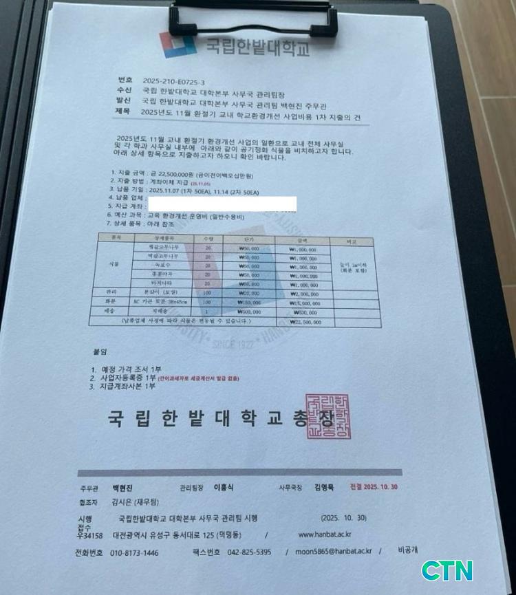 [»çȸ/CTN]Á¤¹ÎÁØ ±âÀÚ¤Ó±¹¸³Çѹç´ëÇб³´Â ÃÖ±Ù º»±³ ±³Á÷¿øÀ» »çÄªÇØ °ø¹®°ú ¸íÇÔÀ» À§Á¶ÇÏ¿© ´ë·®ÀÇ ÈºÐÀ» ÁÖ¹®ÇÏ°í ³³Ç°À» ¿ä±¸ÇÑ »ç±â ½Ãµµ°¡ ¹ß»ýÇÏ¿© ´ëÀüÀ¯¼º°æÂû¼¿¡ °í¹ßÀåÀ» Á¢¼öÇß´Ù°í 5ÀÏ ¹àÇû´Ù.