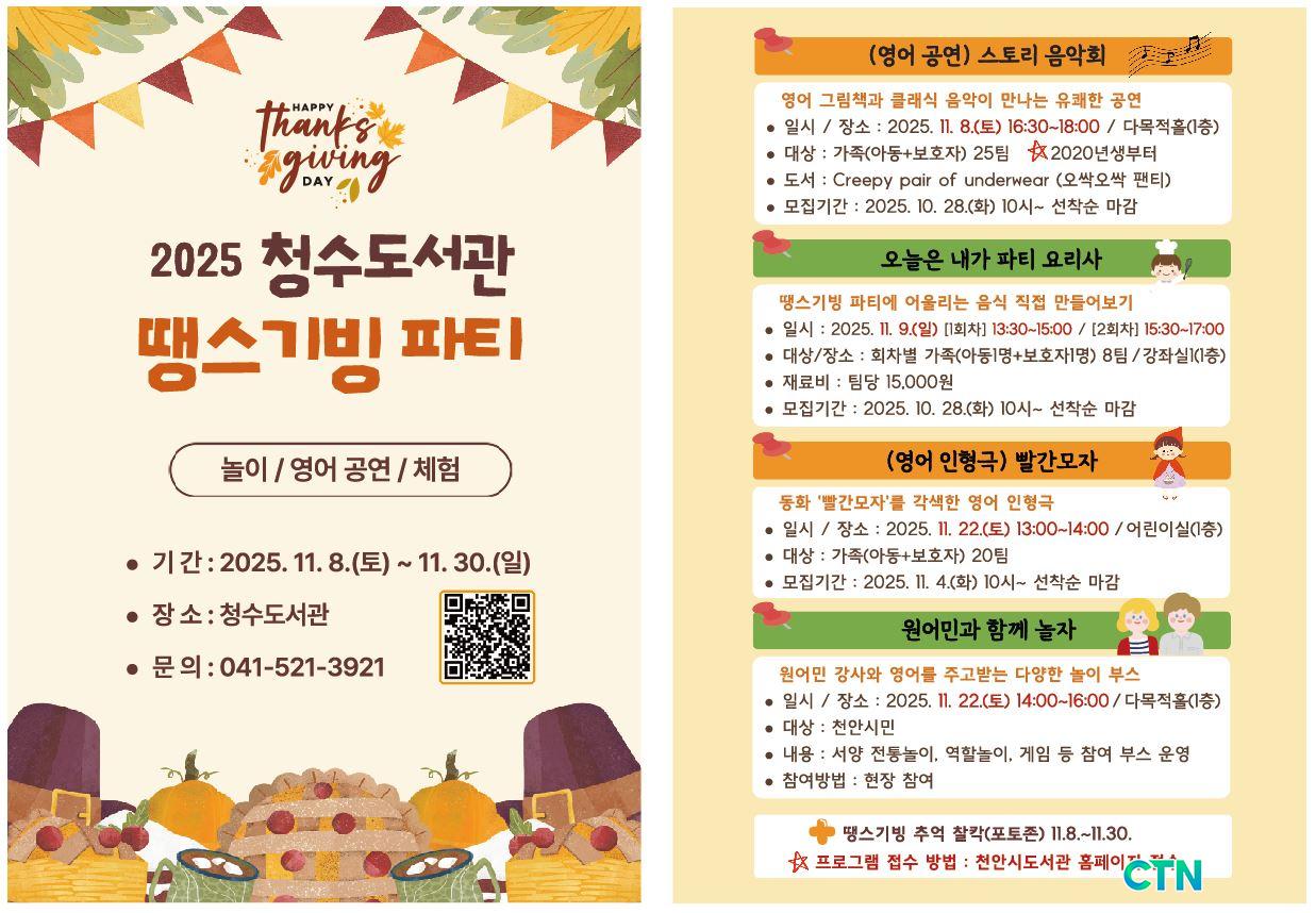 [õ¾È/CTN] °Çö¼ö ±âÀÚ = õ¾È½Ã û¼öµµ¼°üÀº 11¿ù 8ÀϺÎÅÍ 30ÀϱîÁö ¿µ¹Ì ¹®È±ÇÀÇ ´ëÇ¥ ¸íÀýÀÎ ¡®¶¯½º±âºùµ¥ÀÌ(Thanksgiving Day)¡¯¸¦ ÁÖÁ¦·Î ¡®2025 ¶¯½º±âºù ÆÄƼ¡¯¸¦ °³ÃÖÇÑ´Ù°í 6ÀÏ ¹àÇû´Ù.