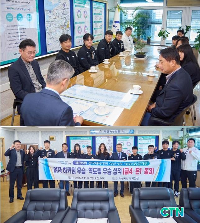 [¾Æ»ê/CTN]Á¶¼ºÂù ±âÀÚ = ¾Æ»ê½Ã(½ÃÀå ¿À¼¼Çö)´Â 6ÀÏ ¿ÀÀü 10½Ã ºÎ½ÃÀå½Ç¿¡¼ Á¦106ȸ Àü±¹Ã¼À°´ëȸ¿¡¼ ¿ì¼öÇÑ ¼ºÀûÀ» °ÅµÐ ¾Æ»ê½Ãû Á÷Àå¿îµ¿°æ±âºÎ ÁöµµÀÚ¿Í ¼±¼ö´ÜÀ» °Ý·ÁÇß´Ù.