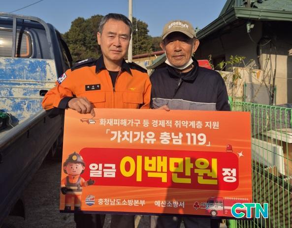 '°¡Ä¡°¡À¯ Ãæ³²119'»ç¾÷ÀÇ ÀÏȯÀ¸·Î ÈÀç ÇÇÇØ Áֹο¡°Ô ¼º±ÝÀ» Àü´ÞÇϰí ÀÖ´Â ¸ð½À/»çÁøÁ¦°ø= ¿¹»ê¼Ò¹æ¼