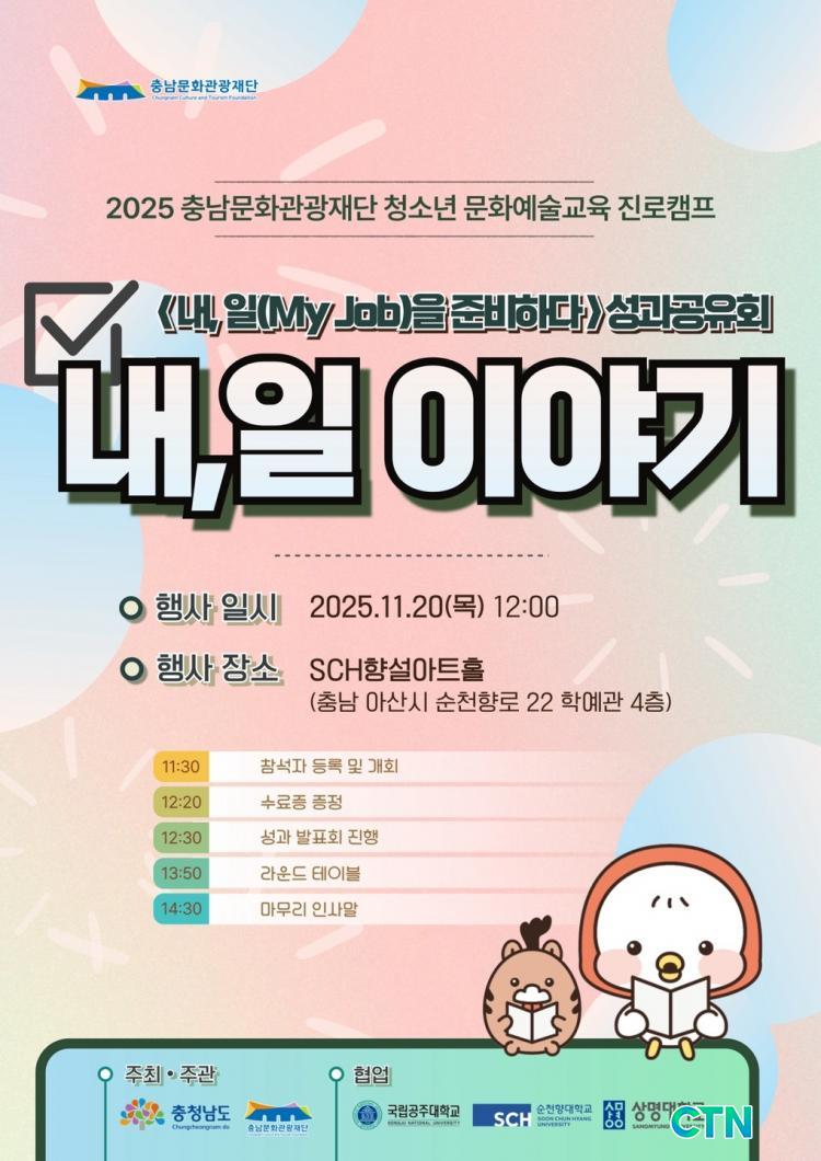 [Ãæ³²/CTN]ÇѼºÁø ±âÀÚ = Ãæ³²¹®È°ü±¤Àç´Ü(´ëÇ¥ÀÌ»ç À̱âÁø)Àº ¿À´Â 20ÀÏ 12½Ã, ¼øÃµÇâ´ëÇб³ Çâ¼³¾ÆÆ®È¦(Ãæ³² ¾Æ»ê½Ã ¼øÃµÇâ·Î 22, Çп¹°ü 4Ãþ)¿¡¼ 2025 ´ëÇлý ¿¹¼ú Áø·ÎŽ»ö °úÁ¤ °øÀ¯È¸ '³», ÀÏ(My Job) À̾߱â'¸¦ °³ÃÖÇÑ´Ù°í ÀüÇß´Ù.