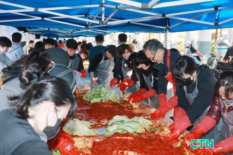 À̳¯ ÀÚ¿øºÀ»çÀÚµéÀº ½Ò½ÒÇÑ ³¯¾¾¿¡µµ ºÒ±¸Çϰí Á¤¼º µé¿© ±èÀå ¸¸µé±â¿¡ µ¿ÂüÇß´Ù. À̳¯ ¸¸µé¾îÁø ±èÄ¡´Â 55Åæ°¡·®À¸·Î Àú¼ÒµæÃþ, µ¶°Å³ëÀÎ µî ¾î·Á¿î ÀÌ¿ô 5,500¼¼´ë¿¡ °¢ 10kg¾¿ Àü´ÞÇÒ °èȹÀÌ´Ù.