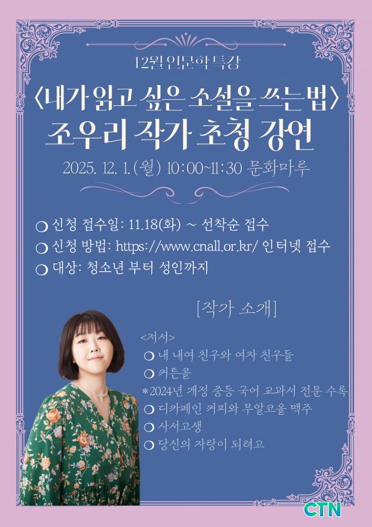 [õ¾È/CTN] °Çö¼ö ±âÀÚ = ÃæÃ»³²µµÃµ¾È±³À°Áö¿øÃ» ¼ºÈ¯µµ¼°ü(°üÀå ¹®Á¤¼÷)Àº ¿À´Â 12¿ù 1ÀÏ(¿ù) ¿ÀÀü 10½Ã, µµ¼°ü ¹®È¸¶·ç¿¡¼ û¼Ò³â°ú Áö¿ªÁÖ¹ÎÀ» ´ë»óÀ¸·Î Á¶¿ì¸® ÀÛ°¡ ÃÊû Àι®ÇÐ °¿¬ ¡®´ç½ÅÀÇ ÀÚ¶ûÀÌ µÇ´Â ¼Ò¼³¡¯À» ¿î¿µÇÑ´Ù°í ¹àÇû´Ù.