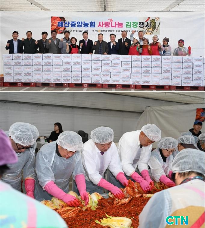 ¿¹»êÁß¾Ó³óÇù ¶ÇÇÑ Á¶ÇÕ¿ø°ú ¿©¼ºÁ¶Á÷ ȸ¿øµéÀÌ Âü¿©ÇØ Áö¿ª ³ó»ê¹°À» Ȱ¿ëÇÑ ±èÀå±èÄ¡ 1200§¸À» ´ã¾Æ ¾î·Á¿î ÀÌ¿ô¿¡°Ô Àü´ÞÇÏ¸ç ¿ÂÁ¤À» ³ª´³´Ù.