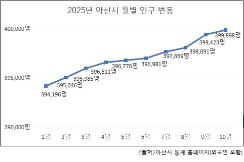 2025³â ¾Æ»ê½Ã ¿ùº° Àα¸ º¯µ¿ÃßÀÌ(¿Ü±¹ÀÎ Æ÷ÇÔ). ÀÌ °°Àº Ãß¼¼·Î º¼ ¶§, ¾Æ»ê½Ã Àα¸´Â 11¿ù Áß 40¸¸ ¸íÀ» µ¹ÆÄÇÒ °ÍÀ¸·Î ¿¹»óµÈ´Ù.